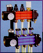 Molded in a high density resin, the manifolds are color coded for supply and return. The best looking manifolds available. | |